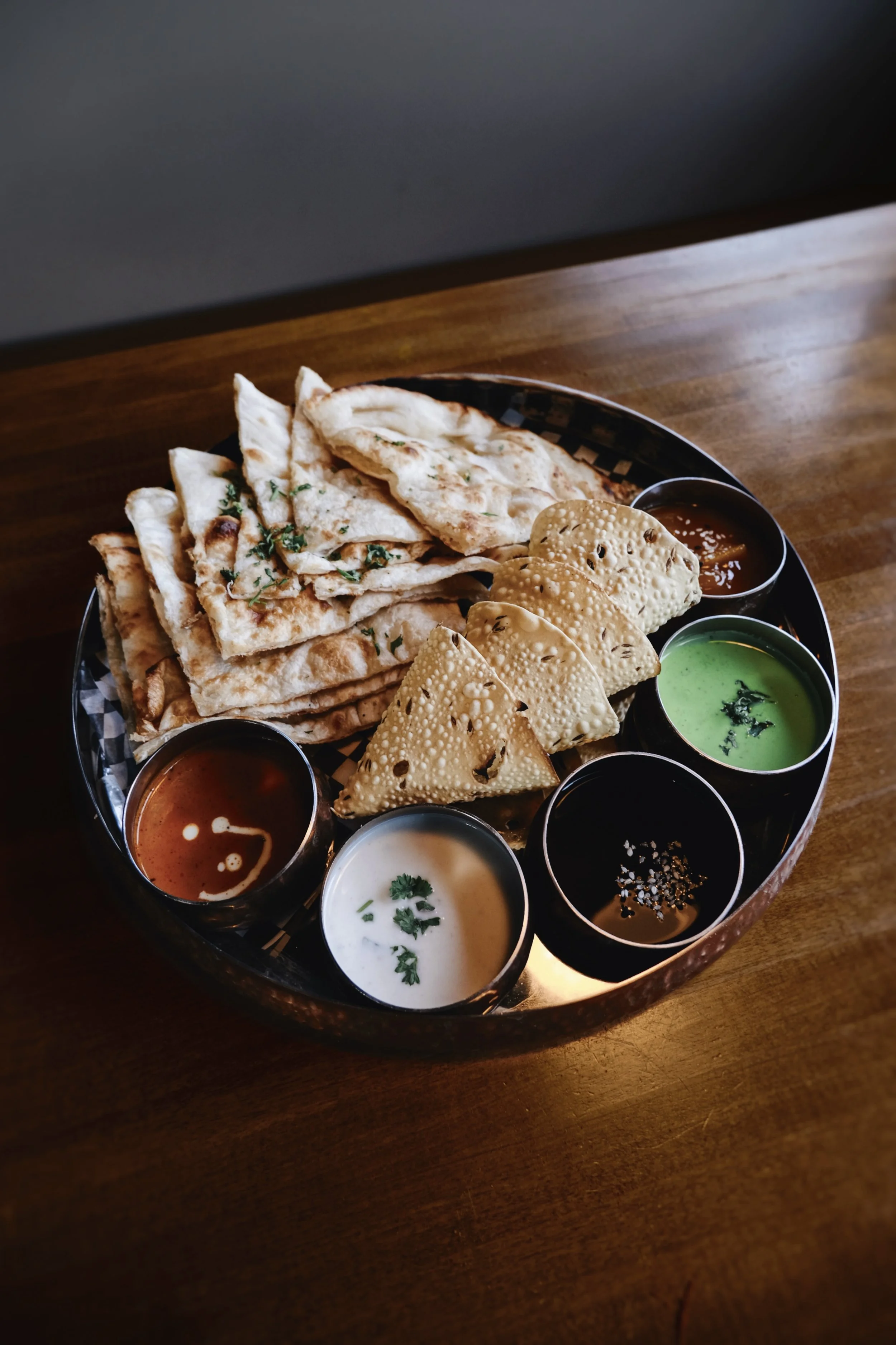 Your protein of choice wrapped with lettuce, tomato, and fresh chutneys, inside our famous house-made tandoori naan. Served with side salad. Choose from: Crispy Chicken | Tandoori Chicken | Tandoori Paneer
