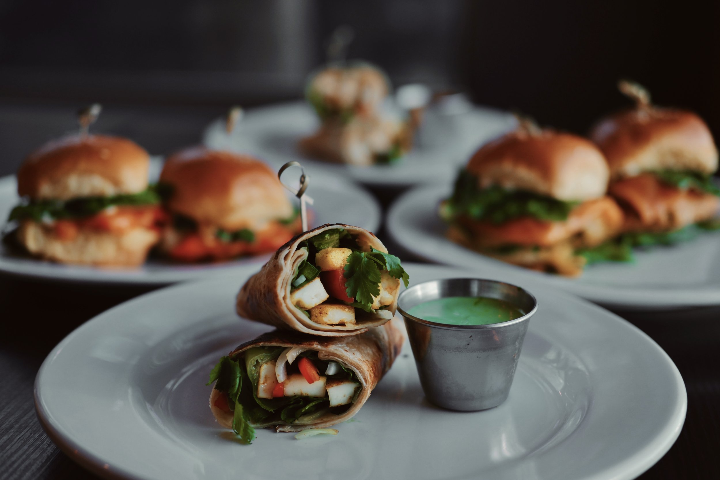 Crispy smashed samosa in a soft bun with chutneys and spiced slaw; a fun Indian street-style twist on the classic slider. Served with a side of small fries.